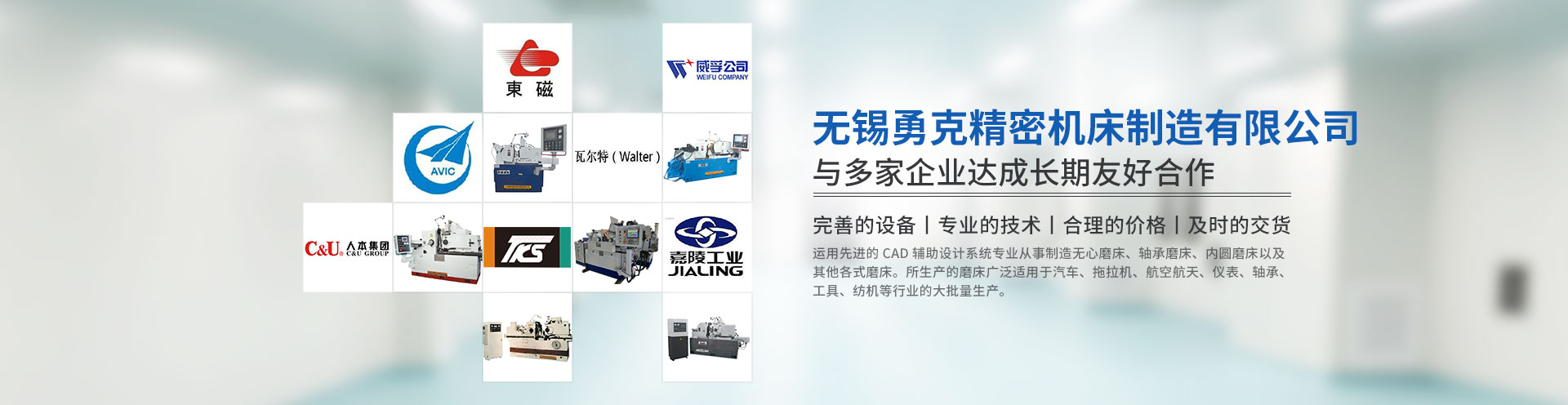 無錫勇克精密機床制造有限公司位于美麗的太湖魚米之鄉—無錫。京滬鐵路、新長鐵路、京杭大運河、滬寧、滬宜高速公路、滬寧二級公路的多條交通線橫貫洛社鎮,交通極為發達,為我公司的經濟發展提供了良好的外部環境和極為便利的交通條件。 公司通過不斷自主創新,瞄準國際磨床的先進水平,以提升國內機床行業的技術為己任,推動產品升級換代。得益于機械設計制造的區域優勢、人才優勢,并結合國外高、新、尖技術,運用先進的三維輔助設計系統專業從事制造無心磨床。所生產的磨床廣泛適用于汽車、拖拉機、航空航天、儀表、軸承、工具、紡機等行業的大批量生產。現已投放市場的有普通無心磨床:M1010B,M1040B,M1050A,M1080B,M1083B,M10100等;另有高精度數控無心磨床:MK1040S,MK5020,MK5030,MK10100,還有寬砂輪數控無心磨床:MK11100,MK10200,MK11200,MK11150,MK11250,產品質量穩定可靠、性能卓越,得到用戶的肯定。